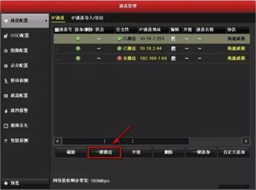 之后大家进入主菜单,然后选择通道管理,就会看到安装的摄像头处于待激活状态(海康的摄像头需要先激活,有的头不需要),所以大家先需要激活每个摄像头,激活完毕后,通道前面会出现绿色的加号,大家依次点击添加就可以了,然后退出到主页面,就会发现四个摄像头的图像都出现在了屏幕上面。